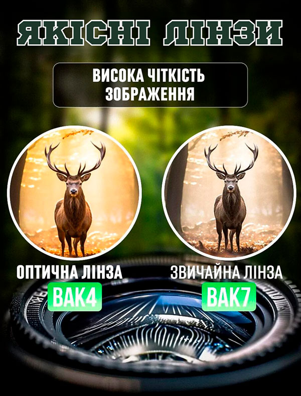 - Діаметр об'єктива о 50 мм, що забезпечує достатню кількість світла для чіткого зображення навіть у сутінках або вночі.